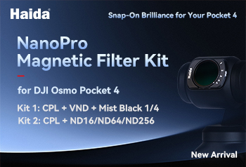 Meet Haida NanoPro Magnetic Filters for the new DJI Osmo Pocket 4, available in singles and kits, to elevate your filming to new heights.